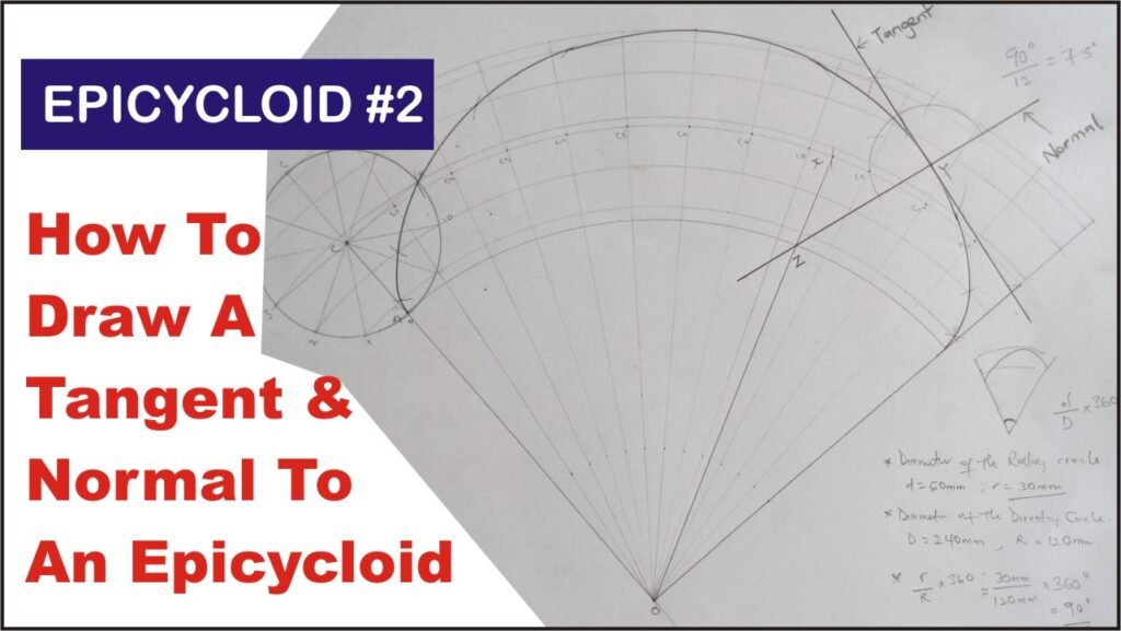 Drawing a tangent and normal to an epicycloid curve is crucial in technical drawing and engineering design, especially when analyzing the motion of rolling circles. The tangent represents the direction of the curve at a specific point, while the normal is perpendicular to the tangent.